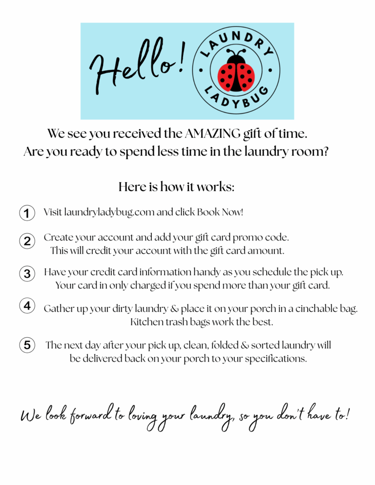 Are you the lucky recipient of a Laundry Ladybug gift card?